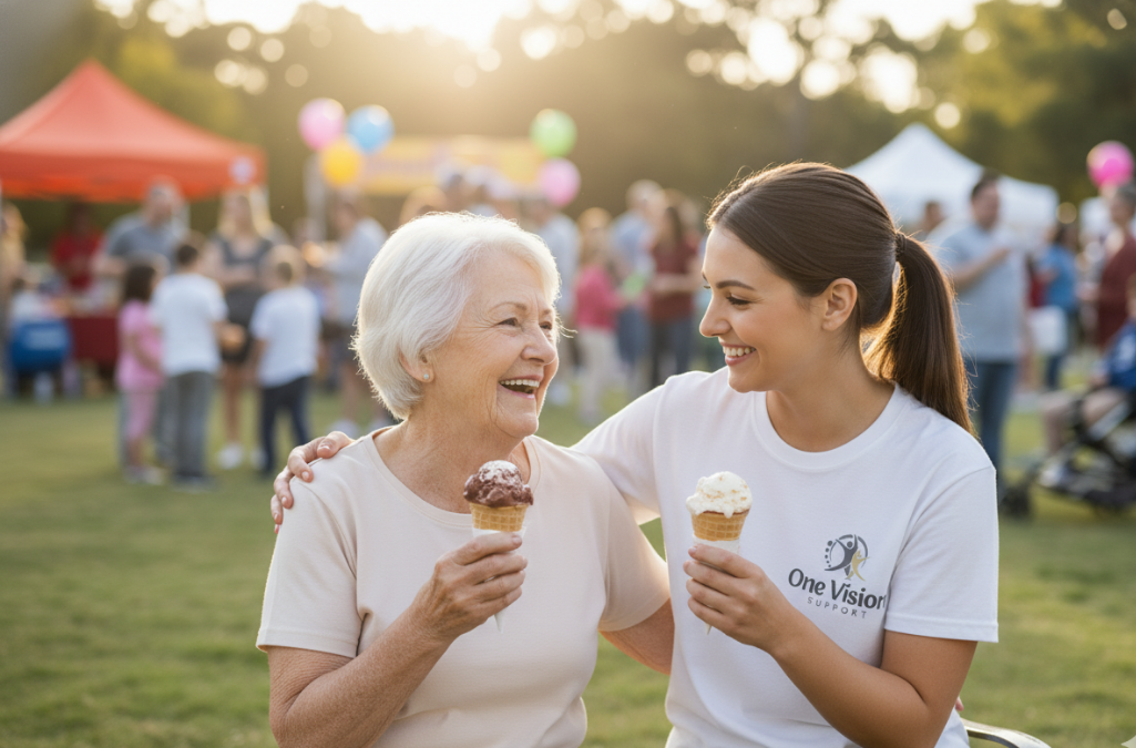 At One Vision Support, we understand that maintaining an active and social lifestyle is essential for overall wellbeing. Our support with appointments, shopping, and social activities helps you stay connected, organised, and independent in your community. Whether you need assistance attending medical appointments, managing errands, or participating in leisure activities, our friendly staff are here to help every step of the way. We ensure you get where you need to be safely and on time while offering companionship and encouragement throughout the day. Our support extends beyond logistics—we promote confidence in navigating public spaces and interacting with others, helping you strengthen independence and social engagement. From grocery trips to community gatherings, we make each outing enjoyable and stress-free. With One Vision Support, you’ll have the freedom to stay active, connected, and in control of your daily life while knowing that caring, reliable support is always by your side.